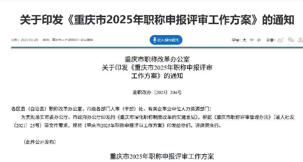 • 重慶市2025年職稱申報評審工作方案出通知啦!
